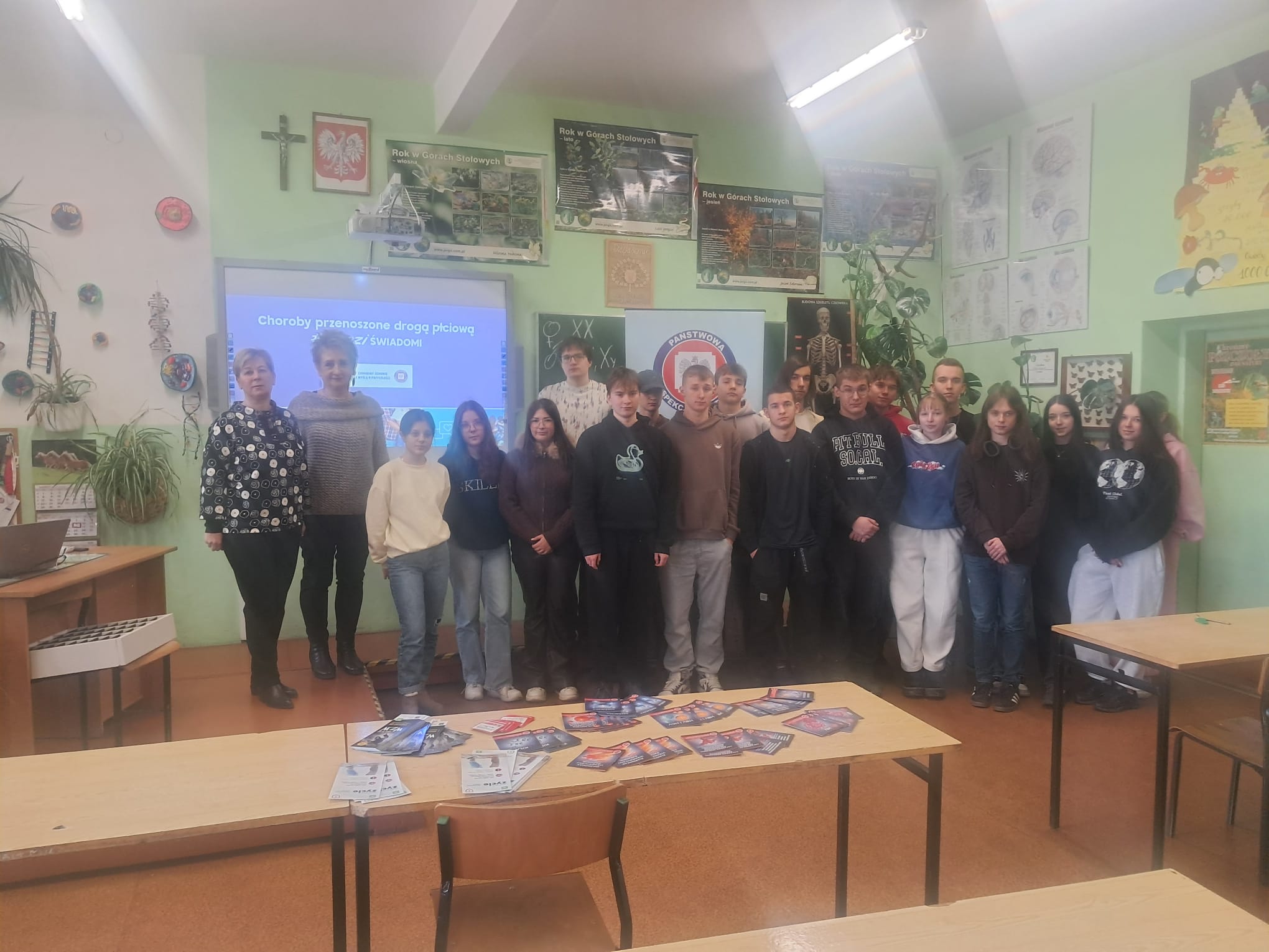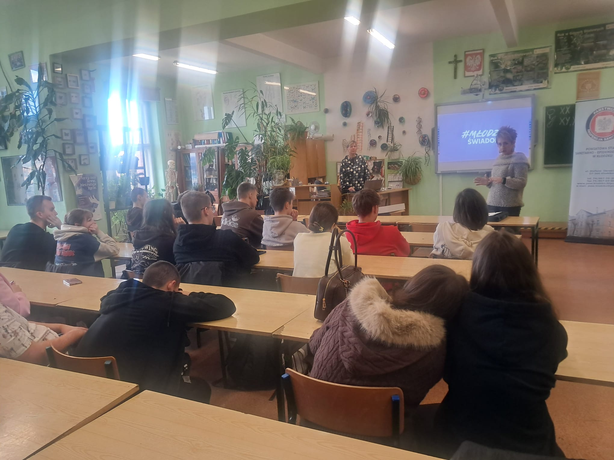 Pani Mariola oraz Pani Iwona z Powiatowej Stacji Sanitarno – Epidemiologicznej w Kłodzku przedstawiły młodzieży niezwykle istotne informacje dotyczące: