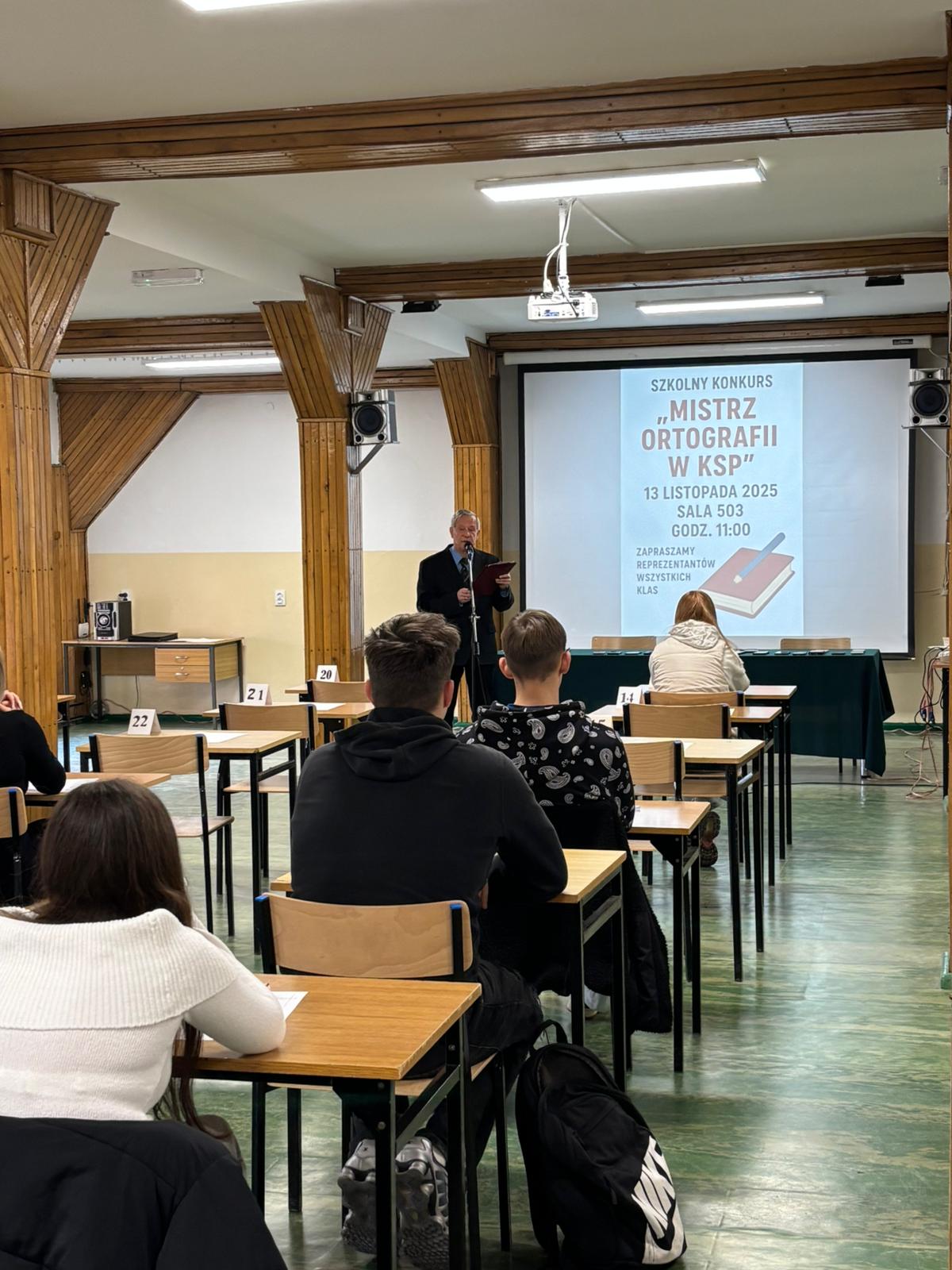 W dniu 25 listopada 2025 r. zakończył się I Szkolny Konkurs Mistrz Ortografii w Kłodzkiej Szkole Przedsiębiorczości. Najpierw przeprowadzono dyktanda diagnostyczne we wszystkich oddziałach KSP. Do etapu szkolnego wytypowano reprezentantów z poszczególnych klas technikum i branżowej szkoły I stopnia. Uczestnicy konkursu zmagali się z polską ortografią i interpunkcją. Napisali dłuższe dyktando, w którym zawarto wyrazy i związki frazeologiczne, wymagające znajomości wszystkich zasad poprawnej pisowni.